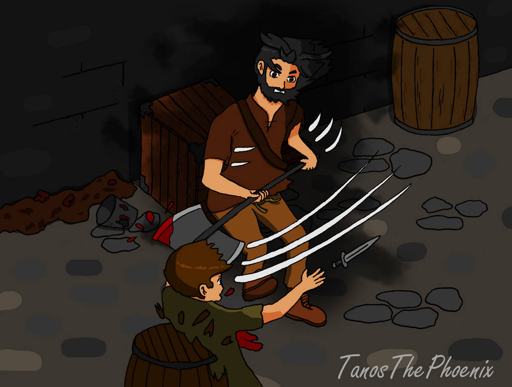 aware. In a swift turn, he had grabbed his axe from behind and swung it